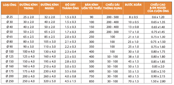 Thông số kỹ thuật ống nhựa xoắn luồn dây điện HDPE GOOD
